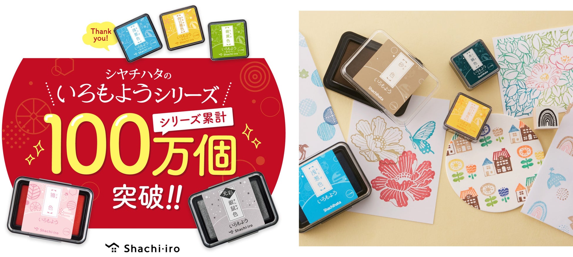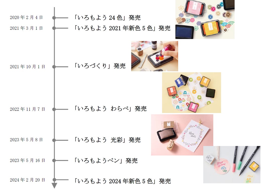 「いろもよう」は、2020年2月から販売している、日本の伝統色から選定したインキ色でスタンプアートにおすすめのスタンプパッドです。新型コロナウイルス感染症が拡大する中で、発売から10カ月で当初の年間販売目標の10万個を販売。発売から2年で30万個を突破するなど想定以上の売り上げを記録してきました。そして、この度発売から4年で「いろもよう」シリーズ累計100万個※2の販売を達成しました。