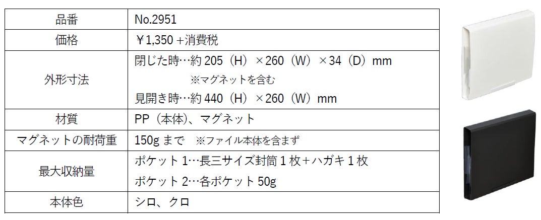 株式会社キングジム(本社:東京都千代田区 代表取締役社長:宮本 彰)は、「冷蔵庫ピタッとファイル」シリーズの新ラインアップとして「書類整理タイプ」「小物整理タイプ」「郵便物整理タイプ」の3タイプ(https://www.kingjim.co.jp/sp/refrigerator-file/)を2024年9月11日(水)より発売します。初年度販売目標数量は新製品合計で29,000冊です。