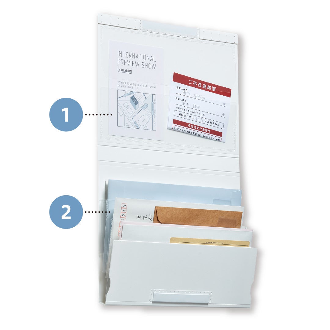 フラップと3段ポケットで郵便物を管理でき、一時保管にも適しています。