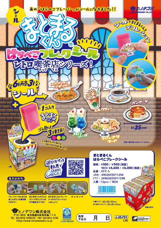 ヒノデワシは、消しくずがまとまる消しゴムのまとまるくんから、はらぺこフレークシール「レトロ喫茶店シリーズ!」を2025年10月下旬発売予定。