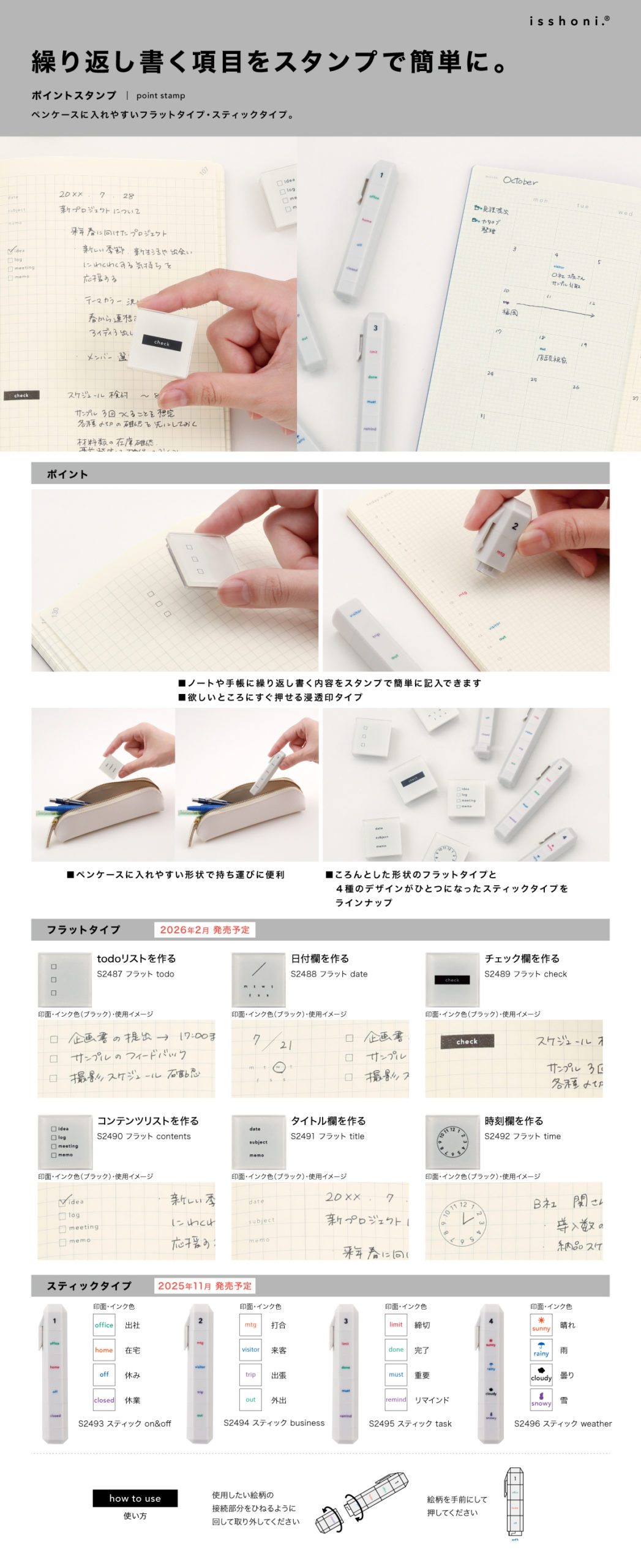 ・isshoni.ポイントスタンプ スティック(on&off、business、task、weather 全4種)価格¥727(税込¥800)