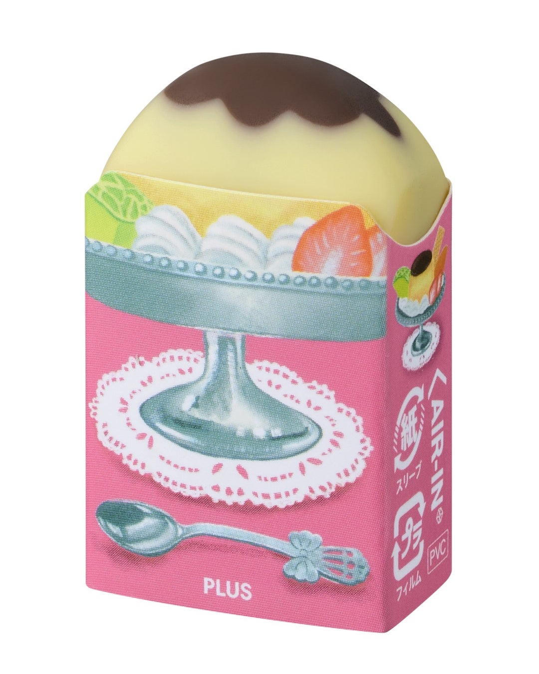 「エアイン」シリーズは、多孔質セラミックスパウダーを練りこんだ消しゴム樹脂を使用した、抜群の消字性能と軽い消し心地の機能性の高い消しゴムです。インパクト抜群のクラシカルなカフェデザインは、子どもたちの学習のサポートにも最適です。プリン・ア・ラ・モード、カレーライス、クリームソーダ、オムライスの4種類のラインアップ。メーカー希望小売価格(税込)は1個242円です。