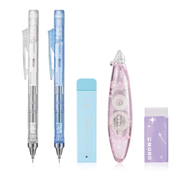 対象商品はシャープペンシル「モノグラフ」(528 円)、シャープ芯「モノグラフMG」(275 円)、消しゴム「モノ」(176円)、修正テープ「モノエアーペンタイプ」(374円)=税込価格=。学習の必須文具4製品を5色で20アイテムに展開します。