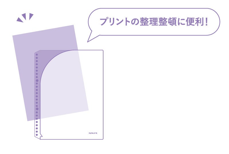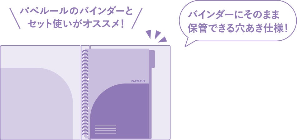 バインダーと併せて使いやすいデザインの、バインダー関連アイテムを用意しました。セットで持ち歩く、書いたものを綴じて保管する、プリントを整理する…自分好みにカスタマイズしてお使いいただけます。
