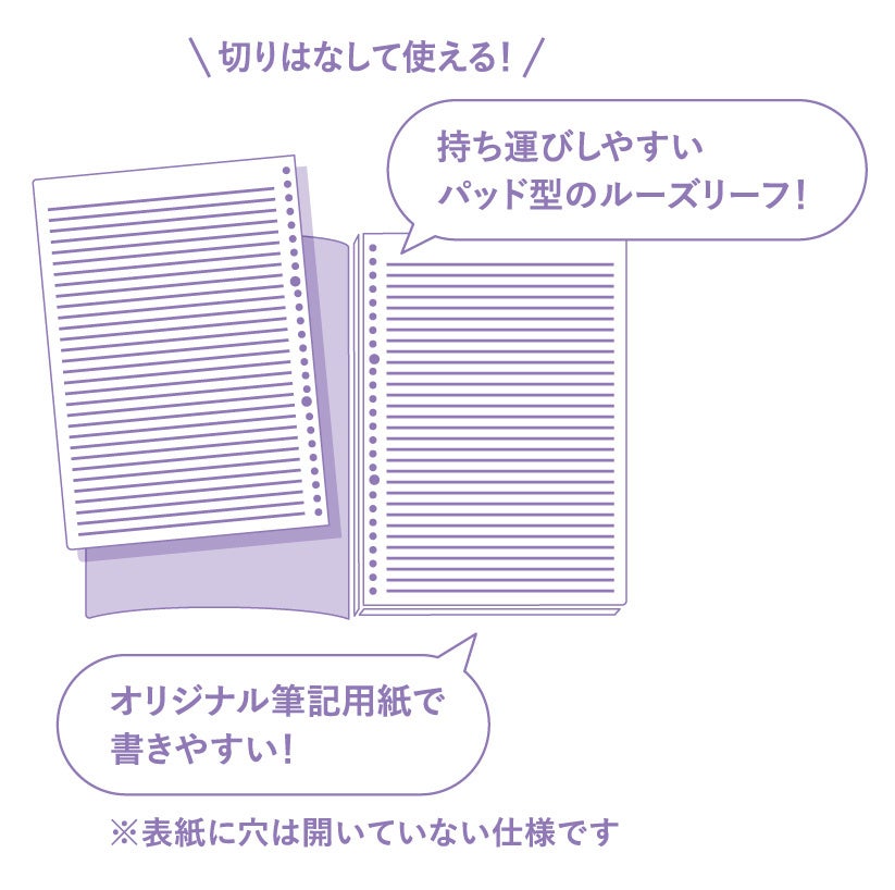ルーズリーフの1辺が糊綴じになっているので、バラバラにならずに保管でき、使う時に必要分だけ切りはなして使うことができます。