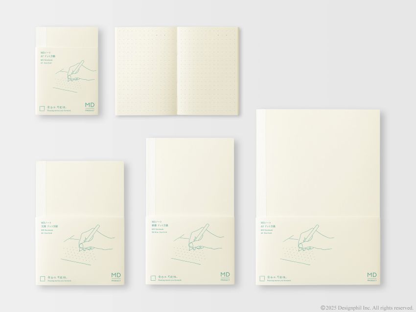 『MDノートジャーナル』で人気のドット方眼(A5サイズ)を『MDノート』の定番製品としてラインアップしました。