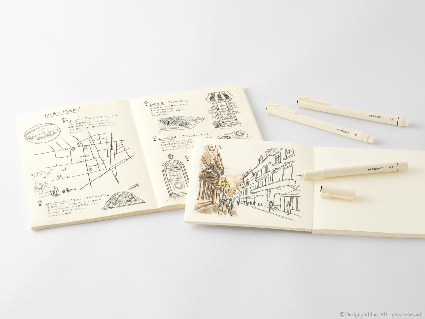 この度、2026年1月に新たに誕生する当社のプロダクトブランド「MD PRODUCT(エムディープロダクト)」から、『MDノートジャーナル』で人気のドット方眼が『MDノート』の定番製品として登場します。さらに、水性顔料インクを使った耐水性のある『MDドローイングペン』も新たに加わり、2026年1月22日(木)に発売します。