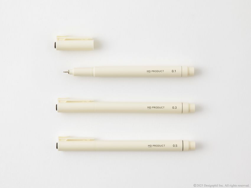 軸の樹脂色は、『MDノート』に似合うクリーム色を採用しました。紙の色合いにやさしく溶け込み、ノートと並べたときに自然な統一感が生まれます。
