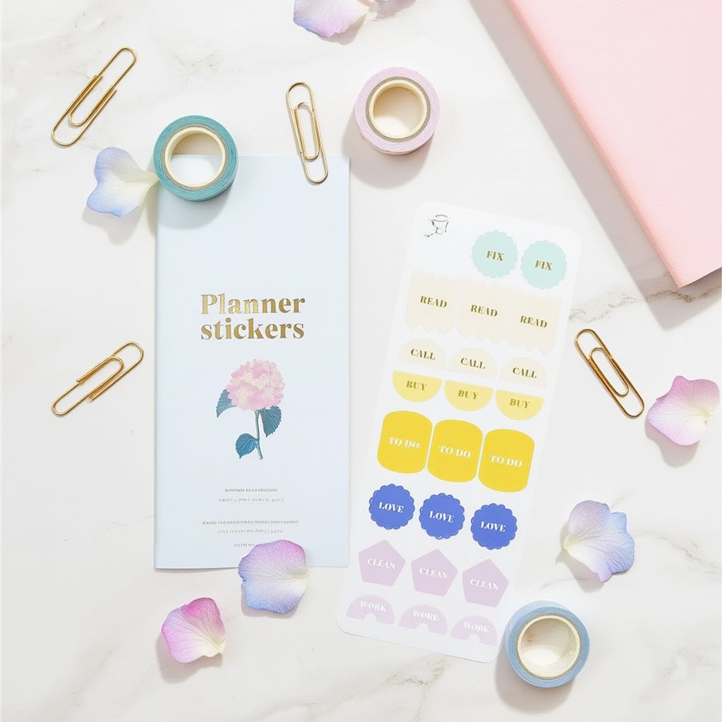 プランナーにぴったりな内容のステッカーがたっぷりセットに!小さくて持ち運びやすいのもうれしい。