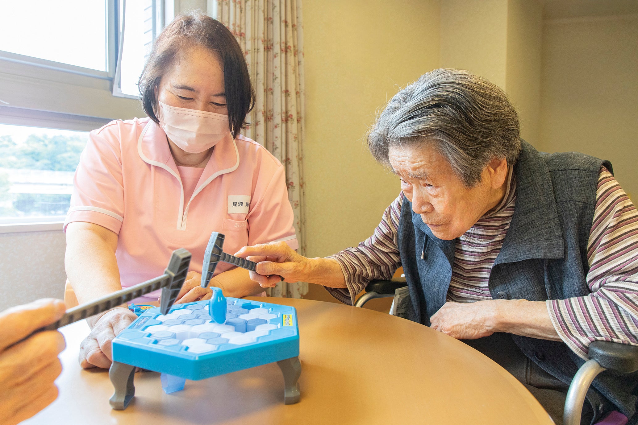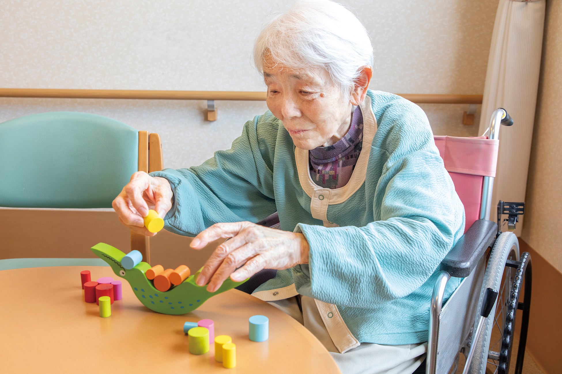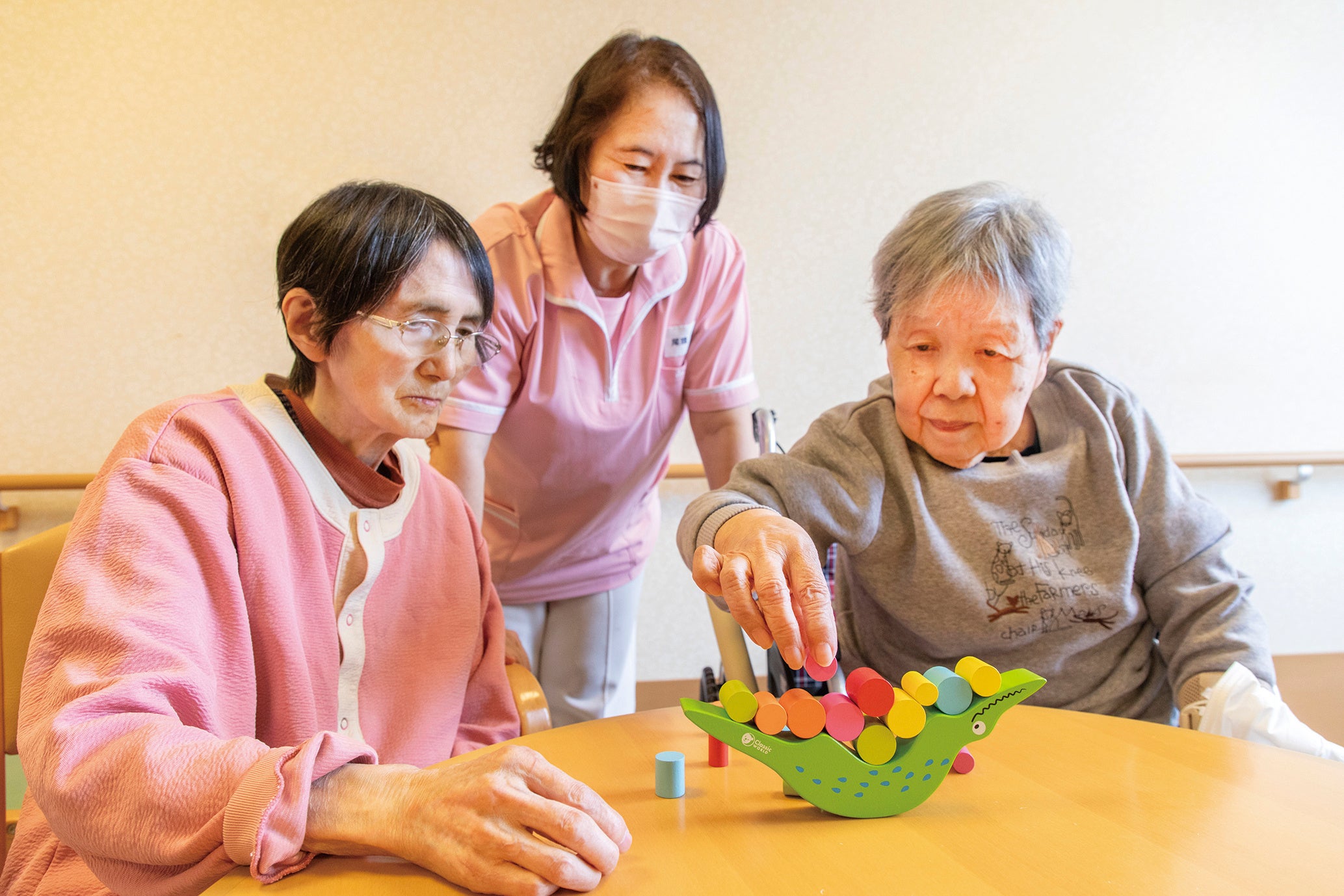 「脳梗塞後に麻痺が残った利用者様が気に入り、少しずつ指が動くようになりました。リハビリにも役立っています。」(有料老人ホームC)