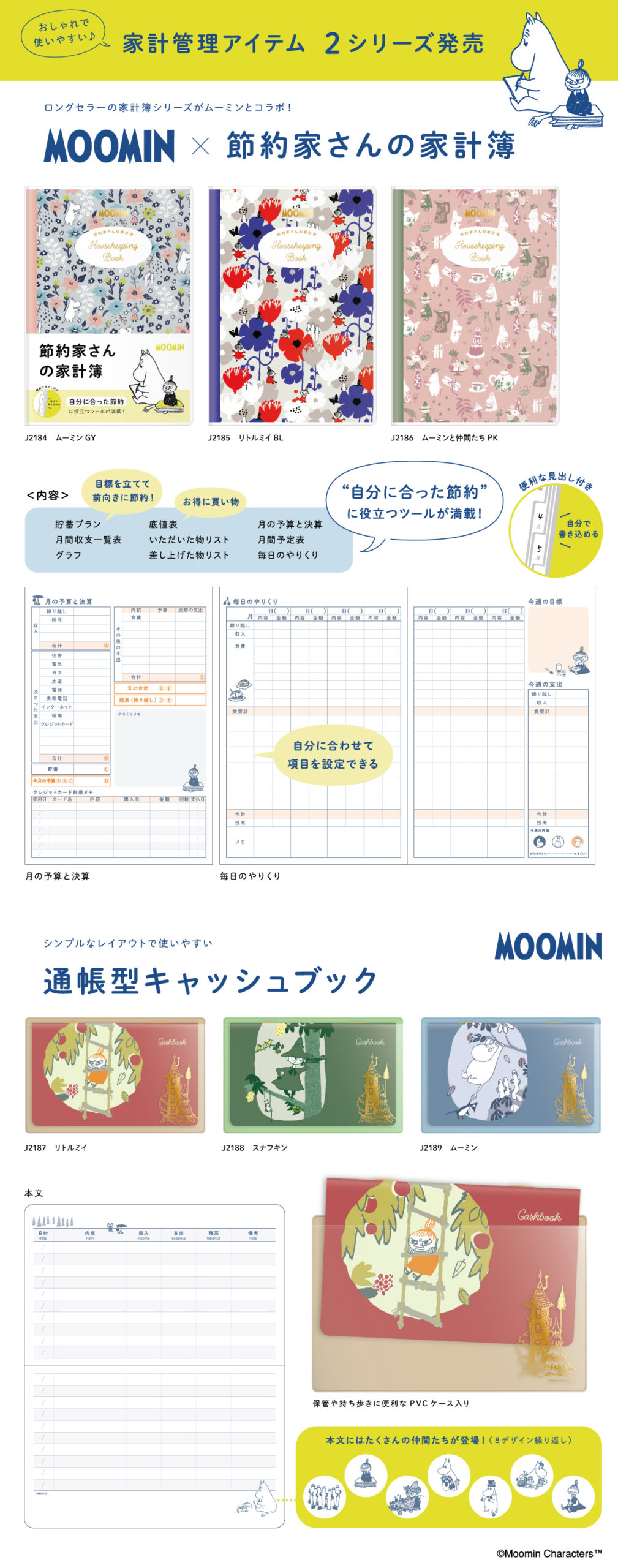 節約家さんの家計簿(ムーミンGY、リトルミイBL、ムーミンと仲間たちPK、全3種) 価格¥1,600(税込¥1,760)