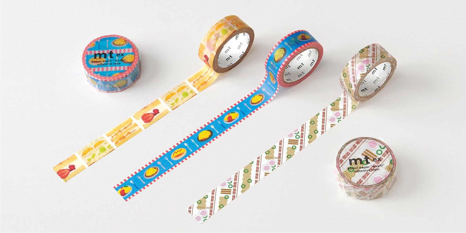 mtのオリジナルデザイン「mt ex」シリーズからは、どこか懐かしいタッチの食べ物モチーフ3種が登場。