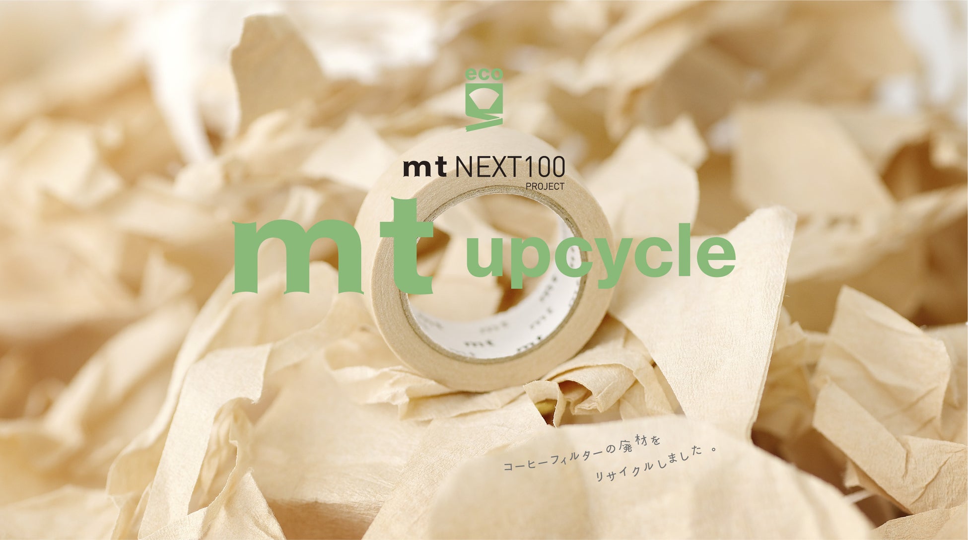 mt upcycle tapeは、コーヒーフィルターの製造工程でうまれる廃材を細かく裁断し、再生された古紙を70%使用しています。