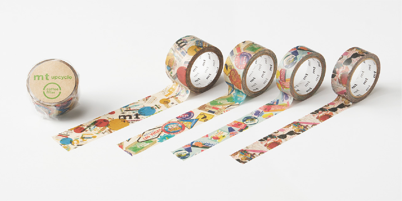 コーヒーフィルターの廃材を活用したmt upcycle tapeから、コラージュ柄が新たにラインナップ。