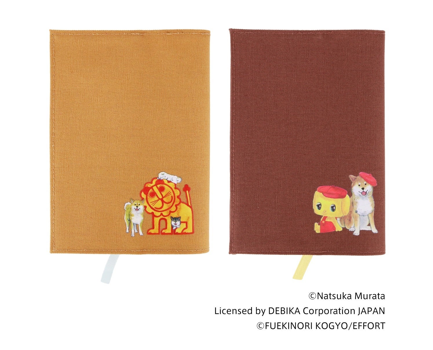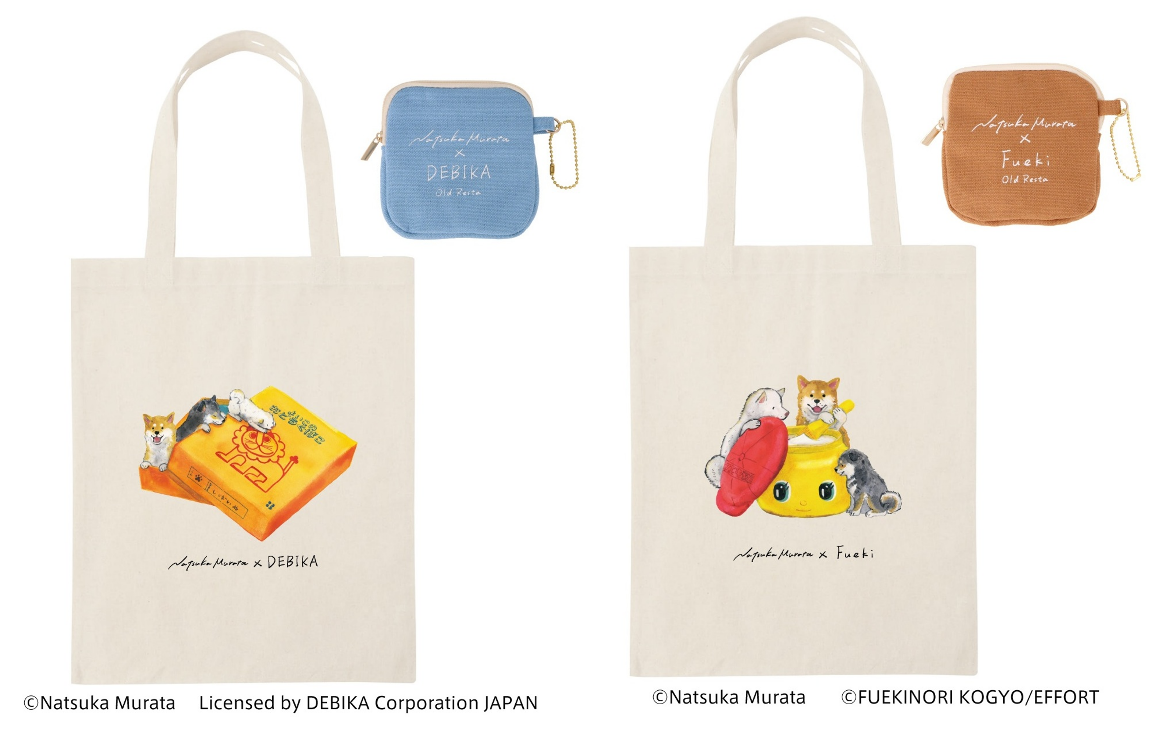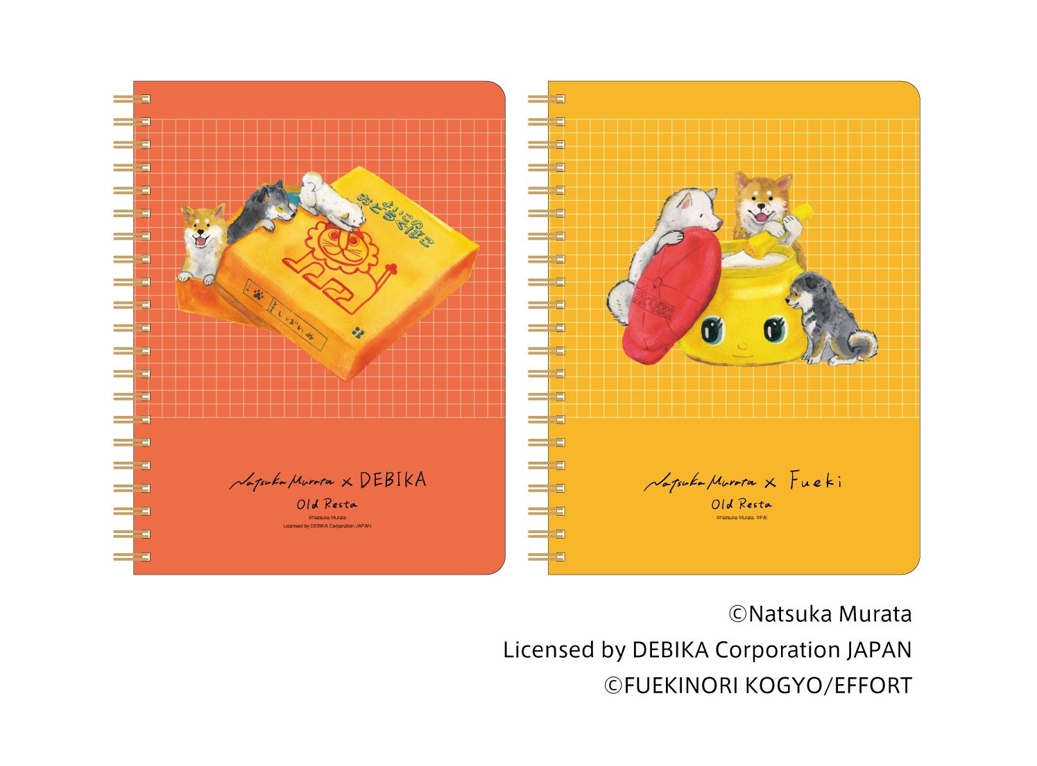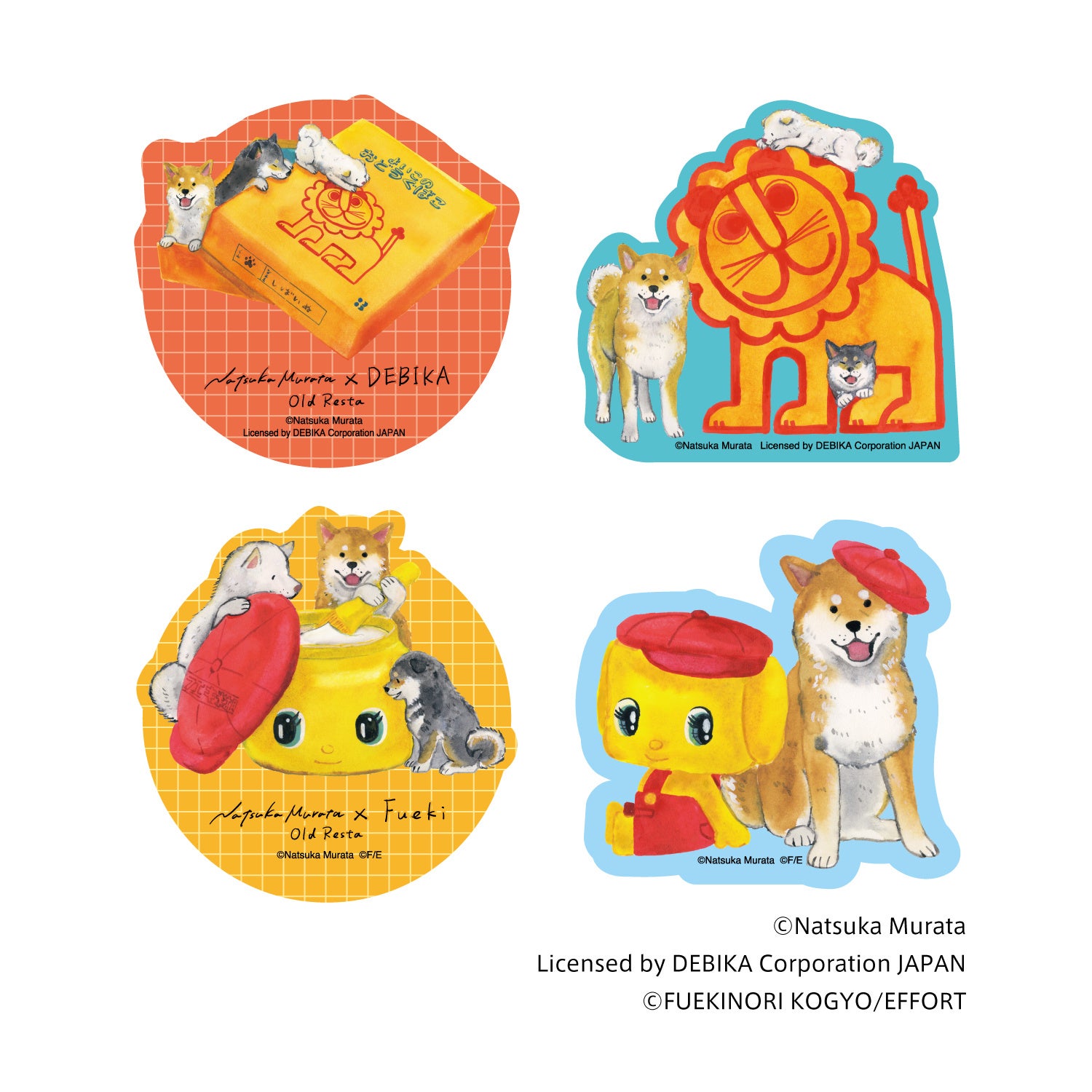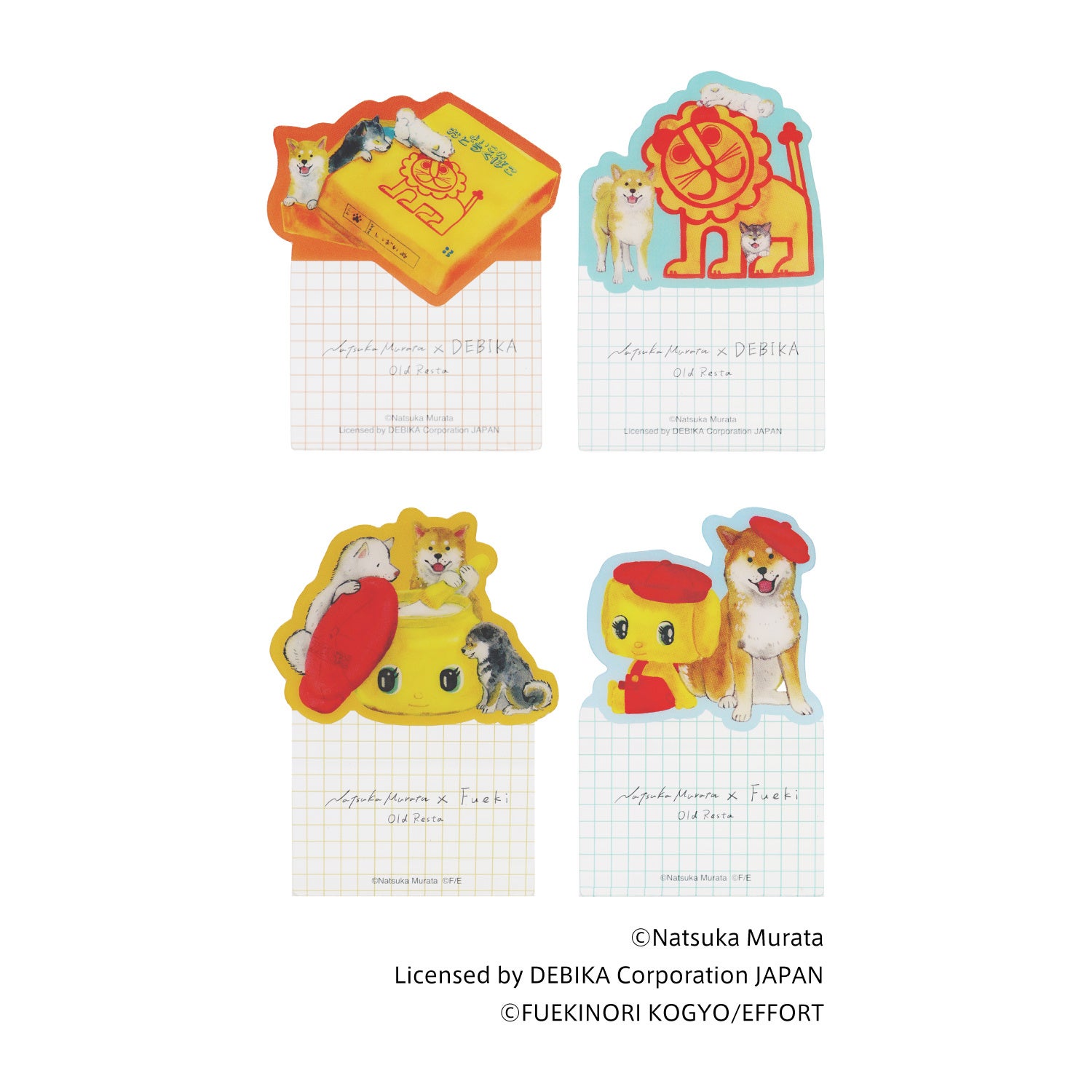村田夏佳作品でおなじみの柴犬たちが、「デビカ」「フエキ」の文具と楽しそうに遊ぶ姿を描き下ろした、限定デザインです。