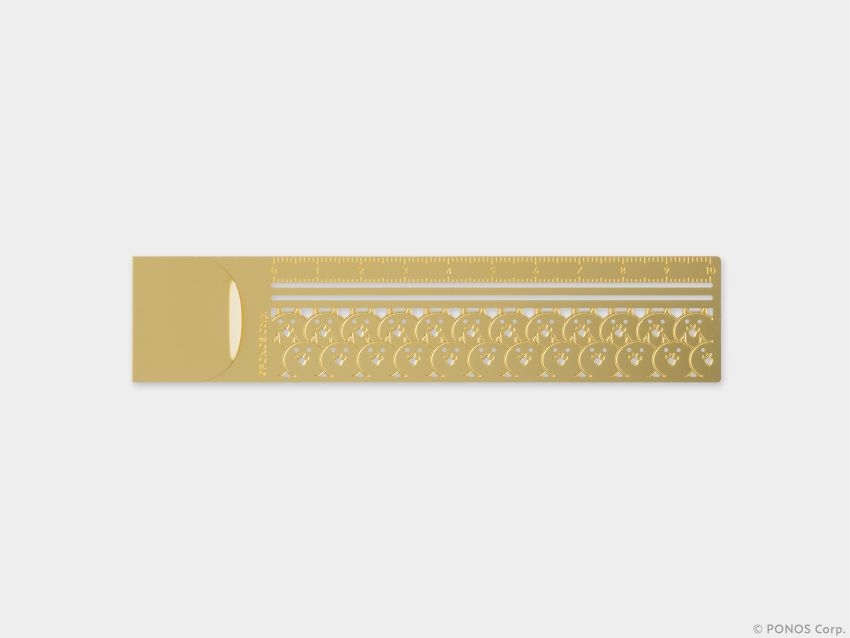 レーザー刻印の目盛りが消えにくい、スリムで丈夫な真鍮製定規。ネコをモチーフにしながらも、重厚感のある真鍮の質感が大人のペンケースになじみます。