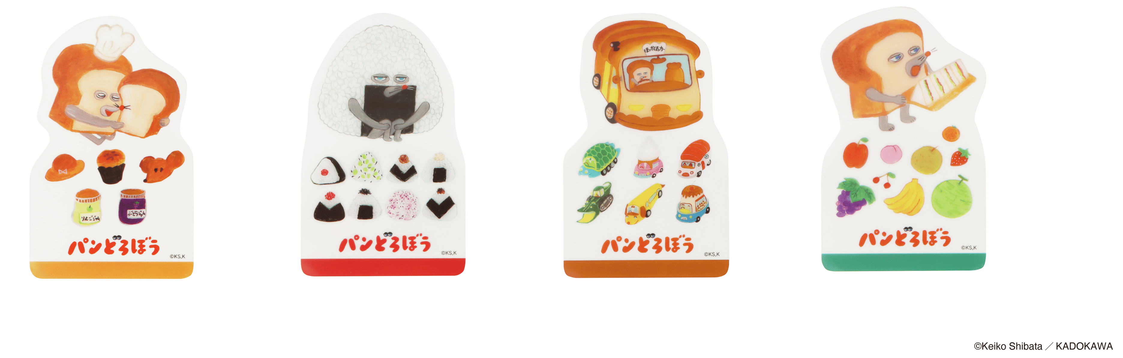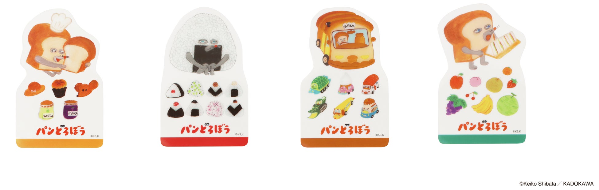 本商品は、大人気ユーモア絵本「パンどろぼう」シリーズのうち、『パンどろぼうとほっかほっカー』『パンどろぼうとりんごかめん』のイラストを中心にデザインしたステーショナリーシリーズです。スマホケースにも挟めるブックマーカーや、作品にちなんだワンポイントつきのブックカバーやペンケース、人気の高いボックスロールステッカーなど、全7種のアイテムをラインナップしました。「パンどろぼう」ならではの鮮やかな色調は活かしつつ、大人でも日常使いしやすい落ち着いたカラーリングに仕上げています。