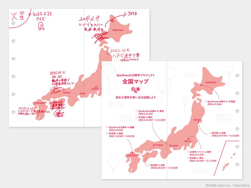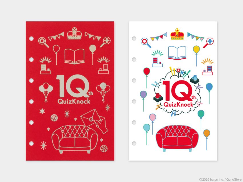 この度、当社の企業向けプロモーショングッズ、OEM の企画・製作を手がけるコマーシャルデザイン事業部は、株式会社baton(本社:東京都品川区、代表衣川洋佑、以下baton)が展開する「QuizKnock(クイズノック)」の10周年を記念した文具アイテム『QuizKnock10周年 カスタム手帳』にセットするリフィルを製作しました。
