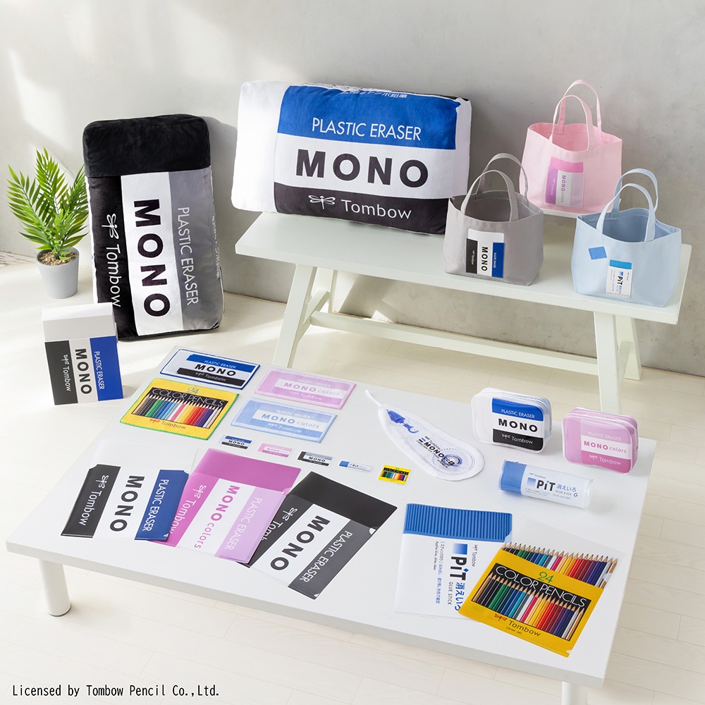 商品内容は、当社のモノブランド商品各種やスティックのりピット、色鉛筆NQのデザイン(意匠)を、ぬいぐるみ(クッション)、ローラークリーナー、バック、ポーチ、タオル、ファイル等、人気のある実用品に展開した限定品。