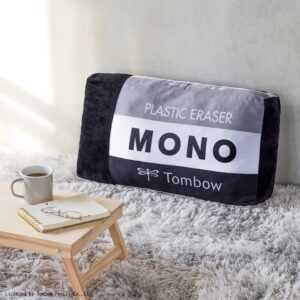 「消しゴム モノブラック」のデザインを幅約60cmの大きなサイズのぬいぐるみに展開。最後のくじを引いた方にプレゼントします。