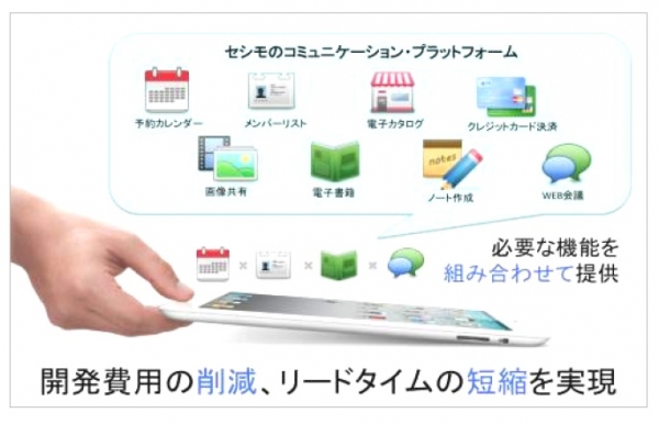 セシモは、スマートフォンやタブレット端末ユーザー向けにコンテンツ配信を希望する事業者を対象に、物販・サービス事業提供機能、クレジットカード課金機能などをモジュール化した多数のアプリケーション機能をプラットフォーム上で提供するB to B to Cビジネスモデルを実現。各事業者はセシモが提供するビジネス・コミュニケーション・プラットフォームを活用し、必要な機能を選んで組み合わせることで、セミカスタマイズによる自社アプリケーションの開発が可能となる。アプリケーション機能が事前にプラットフォーム化されているため、事業者は短期間でサービスを開始することが可能になる。