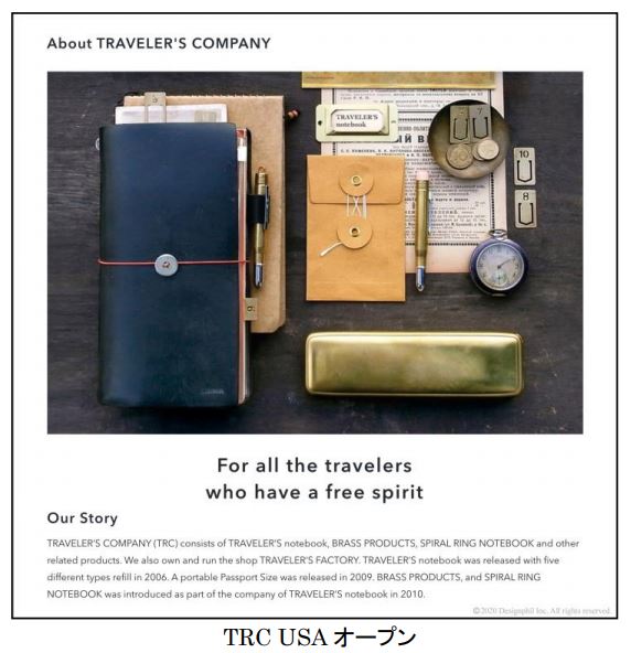 株式会社デザインフィルは、2019年12月に設立した当社100%出資の子会社 Designphil America, Inc.(以下、Designphil America)は、同社が展開するプロダクトブランド「トラベラーズカンパニー」の北米地域におけるオフィシャルオンラインショップ「TRAVELER'S COMPANY USA」(以下、TRC USA)を2020年6月8日(月)に公開しました。