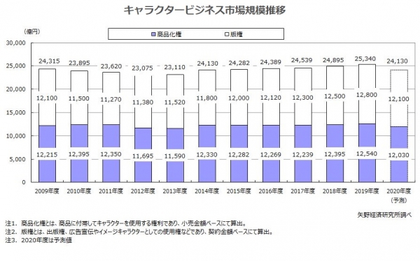 ホーム > オフマガ ニュース一覧 > 矢野経済研究所、2020年度のキャラクタービジネス市場は前年度比95.2%の2兆4,130億円と予測