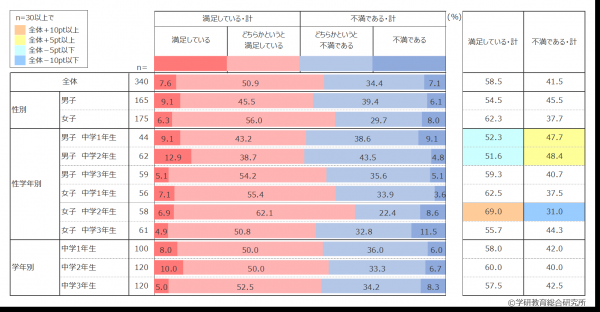 新型コロナウイルス感染拡大防止のための休校期間中に行ったオンライン学習についての満足度を尋ねた結果、約6割の生徒が「満足している」と回答した。