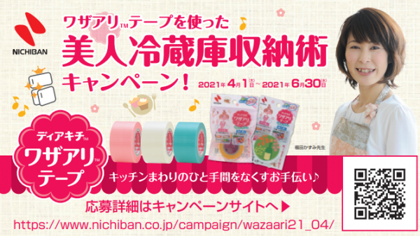 ニチバン株式会社(本社:東京都文京区、社長:高津敏明)は、ラベルや封どめなどキッチンまわりで便利なディアキチ(TM)ワザアリ(TM)テープシリーズをご購入いただくと素敵な賞品が当たるキャンペーンを4月1日(木)より開始いたします。