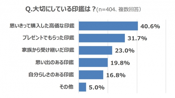 大切にしているのは「思いきって購入した高価な印鑑」40.6%、「プレゼントでもらった印鑑」31.7%