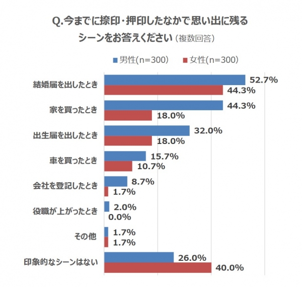 ◆ 「結婚届」「家の購入」「出生届」・・・意外にも女性よりも男性の方が捺印・押印の思い出が強い結果に