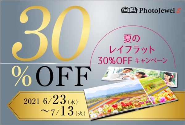 キヤノンマーケティングジャパン株式会社(代表取締役社長:足立 正親)は、選んだ写真を自動でレイアウトし簡単にフォトブックを仕上げるフォトアルバムサービス“PhotoJewel S(フォトジュエル・エス)”で、「夏のレイフラット 30%OFFキャンペーン」を実施します。