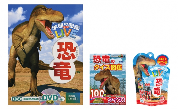 賞品:恐竜図鑑セット(「学研の図鑑LIVE恐竜」1冊、「恐竜のクイズ図鑑」1冊、「恐竜バスボール」1個)