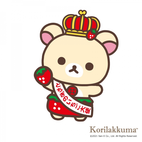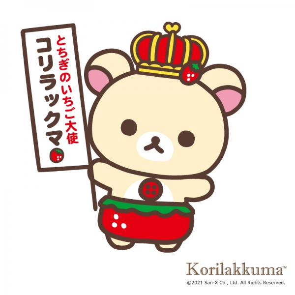 「とちぎのいちご大使」のタスキと冠をかぶったデザインのコリラックマが新しく登場します。