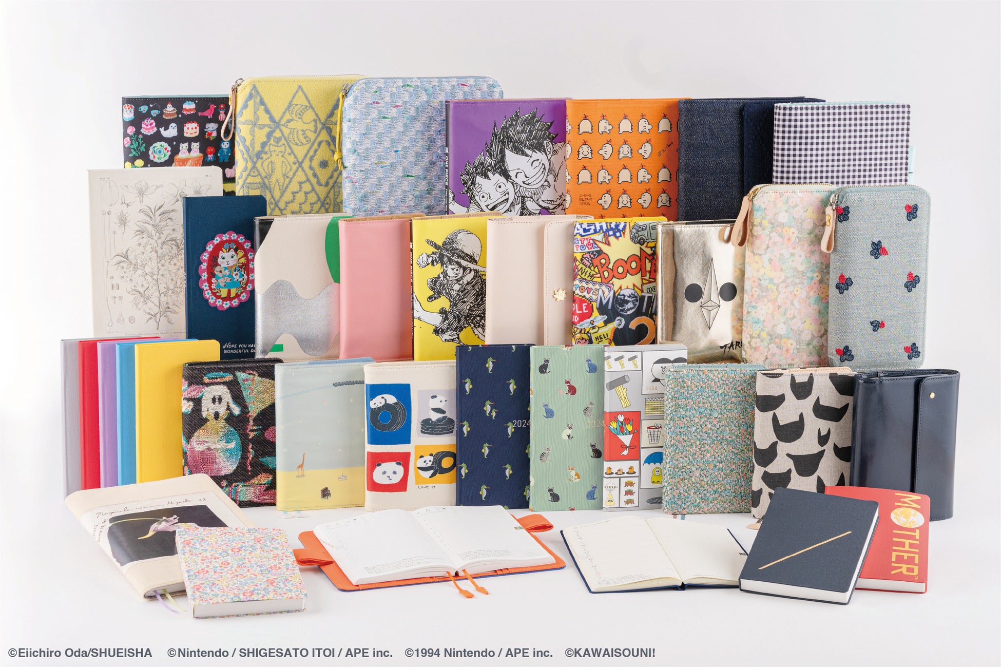 2024年版のほぼ日手帳は、2023年9月1日に発売。新タイプの「HON」や英語版のラインナップを拡充するなど、手帳本体の種類がさらに増えました。『ONE PIECE magazine』や、牧野富太郎博士の植物図、『おぱんちゅうさぎ』など、注目のコラボレーションを含む200以上の新アイテムがそろい、大好評で販売中です。