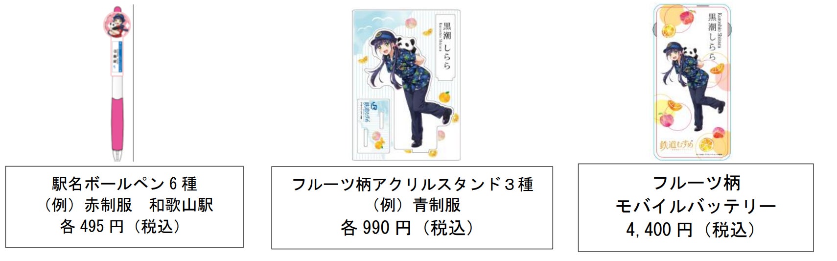 JR西日本和歌山支社の鉄道むすめ「黒潮しらら」のボールペンやアクリルスタンド、モバイルバッテリー等の新商品を発売いたします。