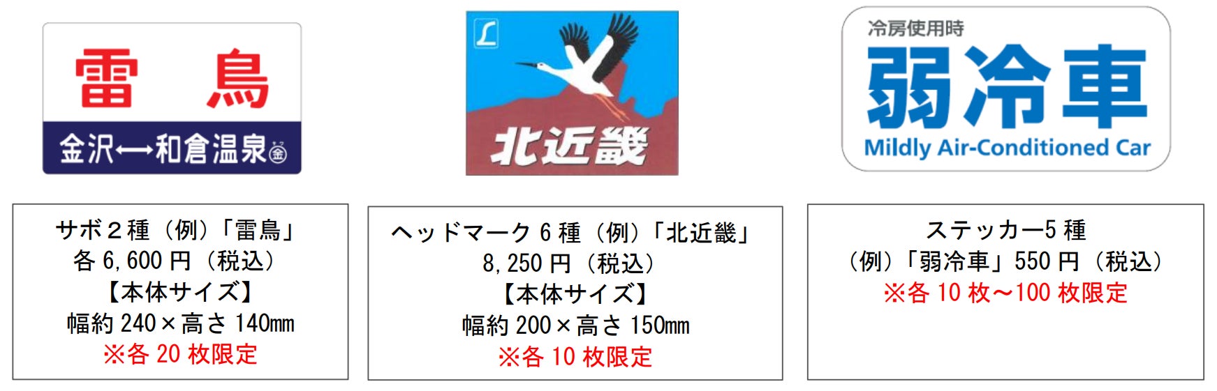 ミニチュアサイズのサボやヘッドマークプレート、車内掲示ステッカーのレプリカを、