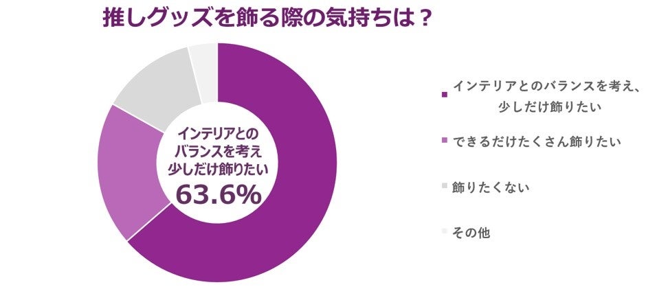 ③ 推しグッズを部屋に飾る際の気持ちとして、「インテリアとのバランスを考え、少しだけ飾りたい」が63.6%と、半数以上の人が推しを愛でながらも暮らしの秩序が保たれた空間づくりに関心があることが判明しました。