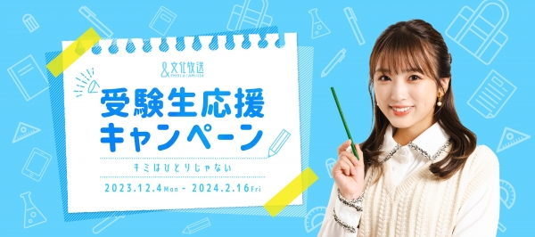 さらに当社は、「~キミはひとりじゃない~受験生応援キャンペーン」期間中の『レコメン!』に「受験生応援CM」を放送。また、キャンペーンガール矢吹さんのレコメン!レギュラーコーナー「奈子の青春(アオハル)調査隊」(毎週水曜日)のコーナーもスポンサーします。