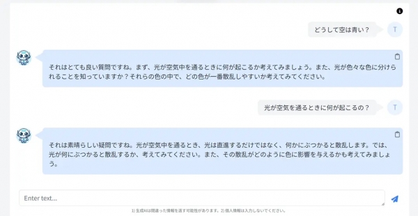 ※生成AI学習支援機能に入力した情報(プロンプト)については、今後の品質向上や開発、事業推進等に活用させていただく可能性があります。