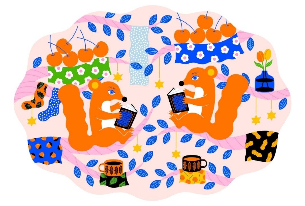 佳江さんは福岡県在住のイラストレーターで、当企画展のメインビジュアルを描き下ろしていただきました。原画と雑貨を販売するほか、企画展の期間中は、有料エリアへの入場・書籍や雑貨等の購入ノベルティとしてメインビジュアルをデザインしたポストカードを配布します。