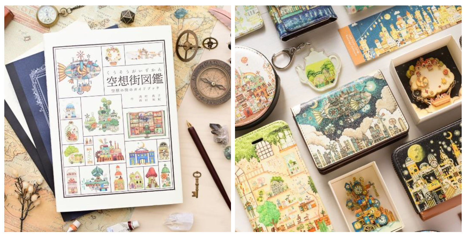 「空想街雑貨店」は、「大人も持ち歩けるファンタジー雑貨」をテーマに雑貨を制作するブランドです。今回の企画展では、空想の街をテーマにしたレトロで温かみのある水彩画が描かれたコインケースやスマホケース、ステッカーなど多数の雑貨を販売します。