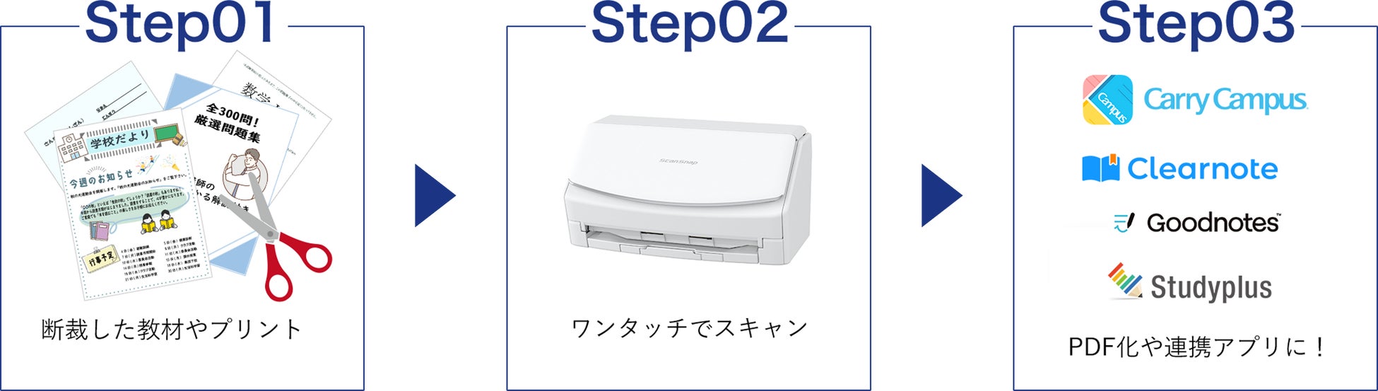 ScanSnapは、情報整理に長けたスキャナーです。紙の教材はScanSnapでスキャンしてデータ化することで、普段の勉強をさらに効率化できます。