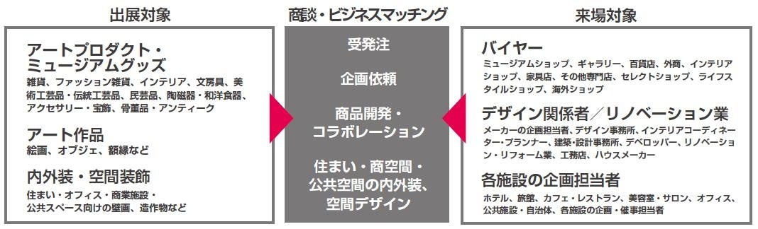 このような中で、感性に訴え心を豊かにするアートプロダクト、絵画、美術工芸品、空間装飾品など、アート商材をBtoBでPRできる場を提供します。