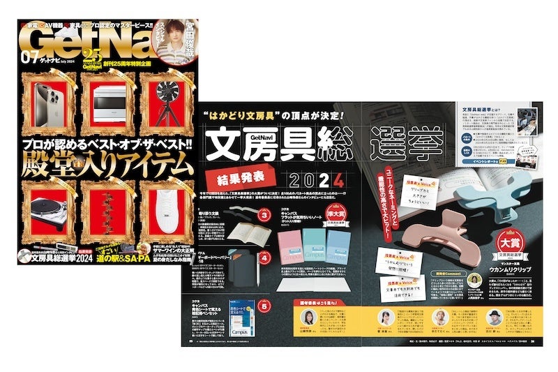 本プレスリリースで紹介している大賞、準大賞、各部門のほか、全体の2〜5位と各部門の2〜5位、選考委員特別賞、新設の地味スゴ特別賞は、5月24日(金)発売の『GetNavi』2024年7月号と、『GetNavi web』内にある「文房具総選挙2024」特集ページにて発表しています。
