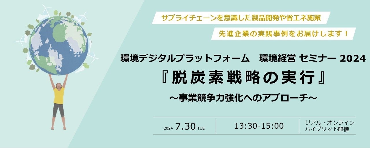 本セミナーではサプライチェーンを意識した製品開発や省エネ施策とその価値(効果)の見える化について先進企業の実践事例をお届けします。環境課題を解決していくことで事業を成長させ、さらには新しい事業を創出していく企業の姿を是非、体感ください。