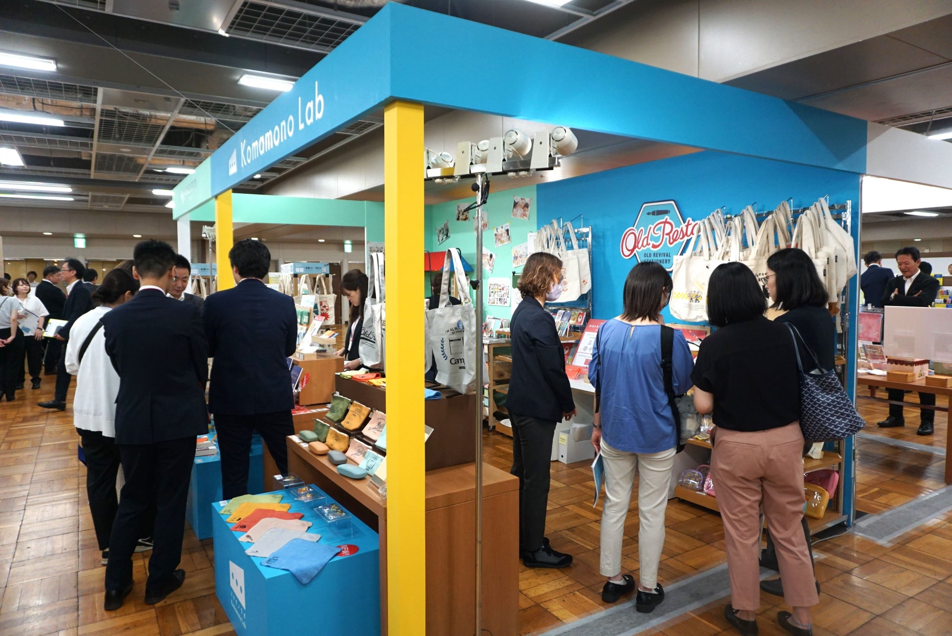 日販は、オリジナル文具・雑貨ブランド「Komamono Lab」「Fonte」「Greeful」などを出展し、9月発売予定の「本一封ブックカバー」、12月発売予定の「ONE ECO PROJECT リサイクルポリエステル製ハンカチ」などの新商品もいち早くご紹介しました。