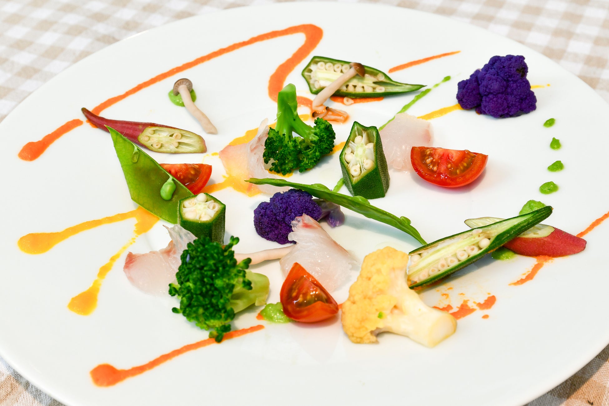 「Restaurant Neohas」で提供する料理は、地元の契約農家から届く新鮮な野菜や、下関ならではの魚介類を用いています。