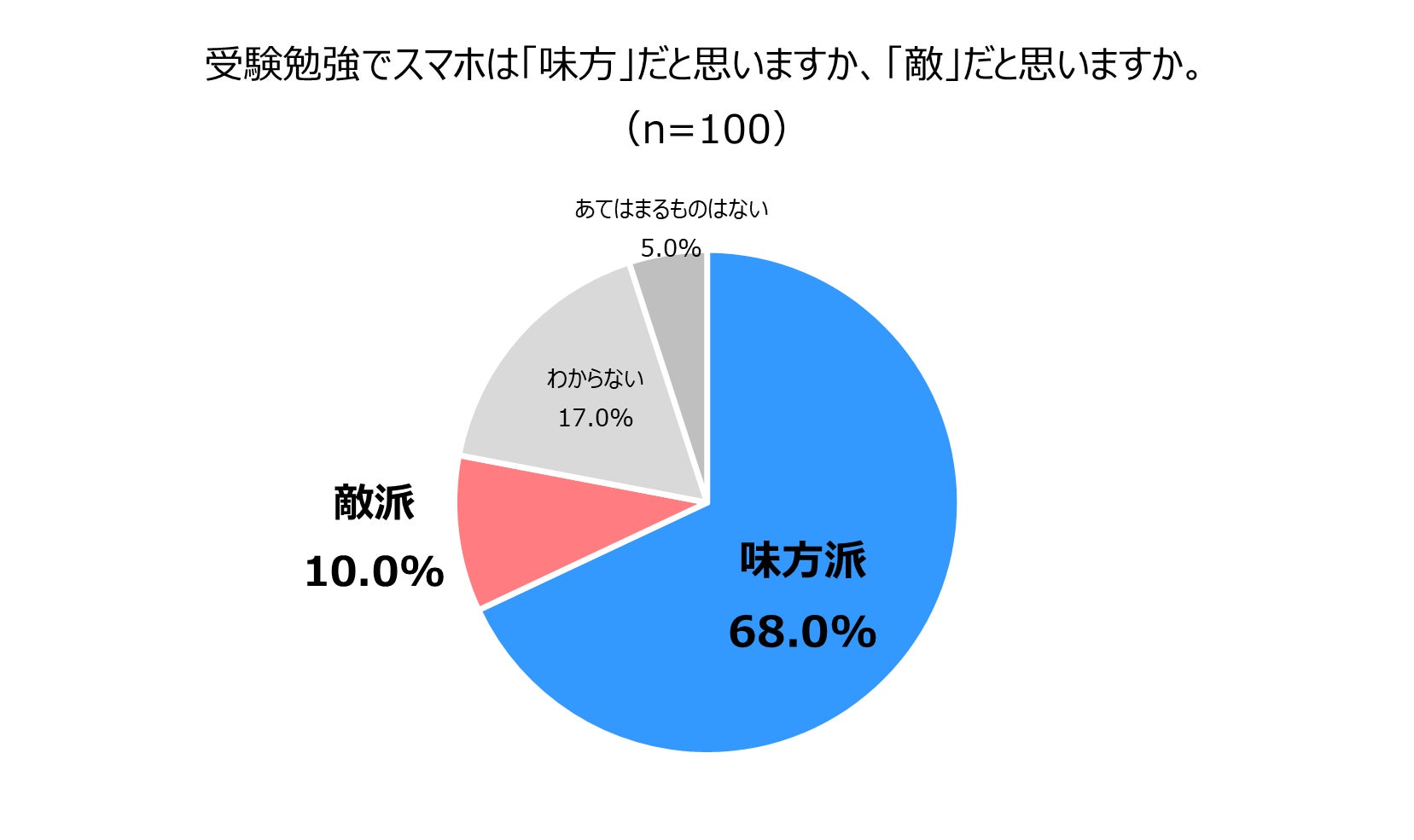 2.現役大学受験生は、スマホを上手く使う「受験勉強にスマホは味方」が約7割で、もはや当たり前!!現役高校生100名を対象とした調査を実施