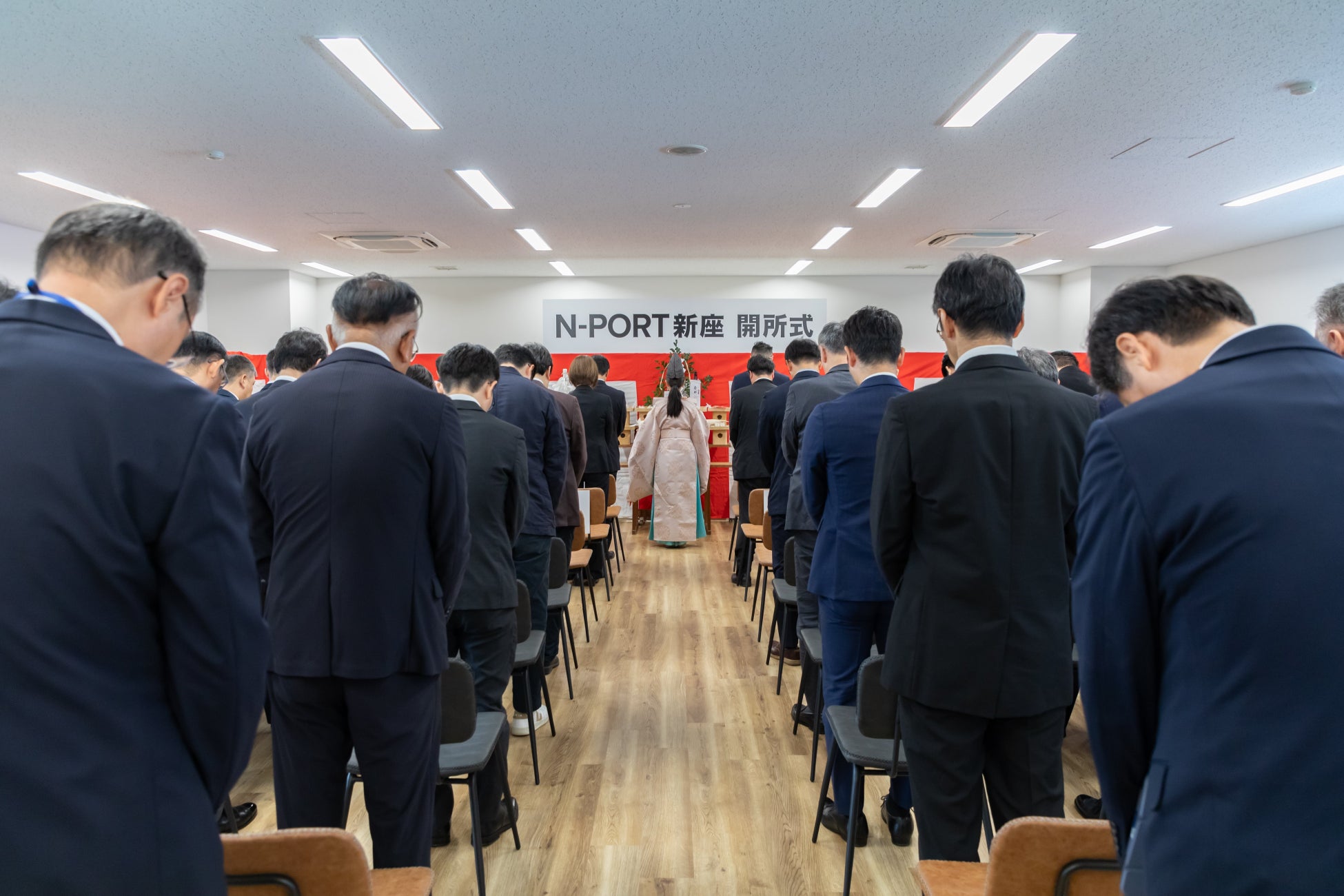 開所初日となる10月7日(月)に本拠点にて神事を執り行い、外部のパートナー企業様11社を含む、約50名にご出席いただきました。